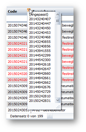 Innerhalb jeder Spalte befindet sich ein Selektivfilter. Hier können Sie aus allen darin vorhandenen Spalteneinträgen selektieren.