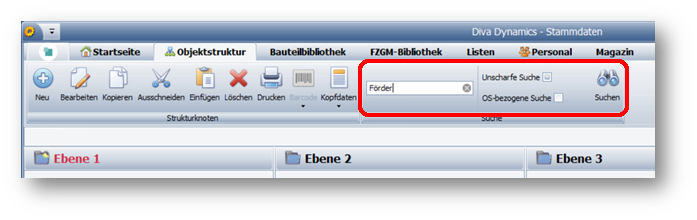 „OS-bezogene Suche“ (Objektstruktur bezogene Suche) bedeutet eine Eingrenzung der Suche innerhalb eines bestimmten Strukturknotens. Dieser muss allerdings bekannt sein.