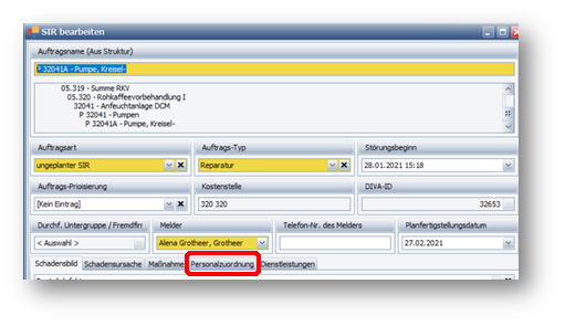 Über das verantwortliche Team wird der oder die Mitarbeiter ausgewählt, welche die Instandsetzung durchgeführt haben.