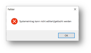 Möchten Sie einen Systemeintrg via „Bearbeiten“ ändern, erscheint eine Hinweismeldung mit folgendem Text: