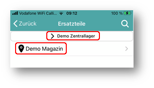 Es gibt die Möglichkeit, Step by Step durch die Lagerverwaltung/Lagerplätze zu dem gewünschten Ersatzteil zu gelangen, oder via Barcode-Scan / Manuelle Suche.